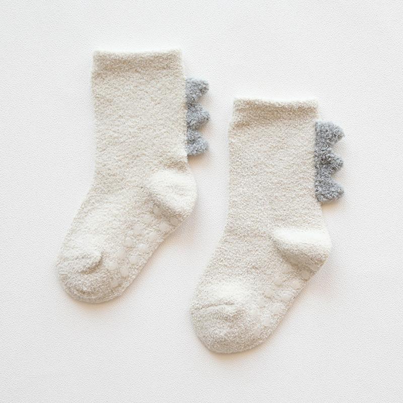 1 пара детских носков для малышей, детские флисовые носки с динозаврами, нескользящие, осенне-зимние, утолщенные напольные носки M белый