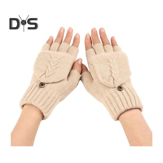 1 пара женских зимних перчаток с откидными пальцами, толстые плюшевые ветрозащитные противоскользящие перчатки для письма, сохраняющие тепло, варежки для набора текста абрикосовый