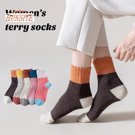 1 пара женских осенне-зимних носков, контрастного цвета, средней длины, толстые, теплые, без запаха, эластичные, противоскользящие, вязаные, поглощающие пот женские носки до середины икры розовый