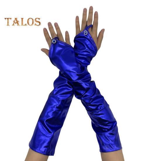 1 пара женских перчаток для косплея со стразами и обручем для пальцев, искусственная кожа, варежки без пальцев для ночного клуба, выступления на сцене, танец на пилоне королевский синий