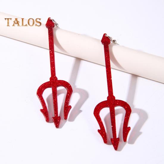 1 пара женских сережек-крючков в форме трезубца, преувеличенные индивидуальные стильные висячие серьги в стиле ретро, готические серьги-подвески, украшения для ушей для вечеринок и косплея красный