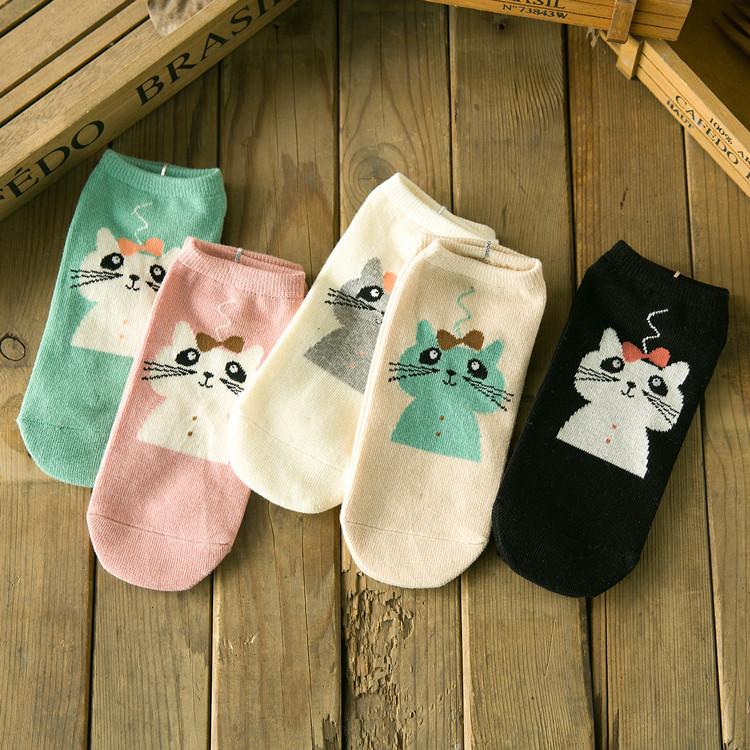 1 пара женских хлопковых носков с мультяшным котом, милые носки для девочки, милые носки для платья, повседневные летние милые удобные короткие носки One Size