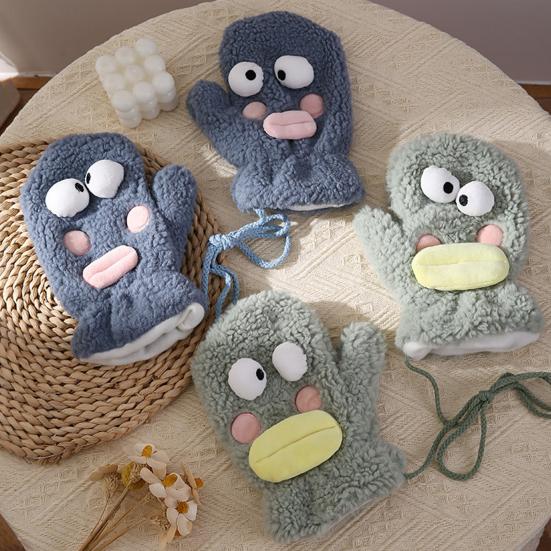 1 пара зимних варежек в мультяшном животном стиле, толстые плюшевые не теряющиеся ремешки, морозостойкие ветрозащитные, мягкие противоскользящие вязаные варежки для девочек, уличные варежки, перчатки кофейный