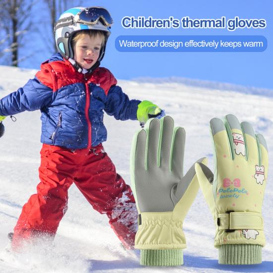 1 пара зимних лыжных перчаток с застежкой-лентой, водонепроницаемые, ветрозащитные, с флисовой подкладкой, термоперчатки для детей с сенсорным экраном