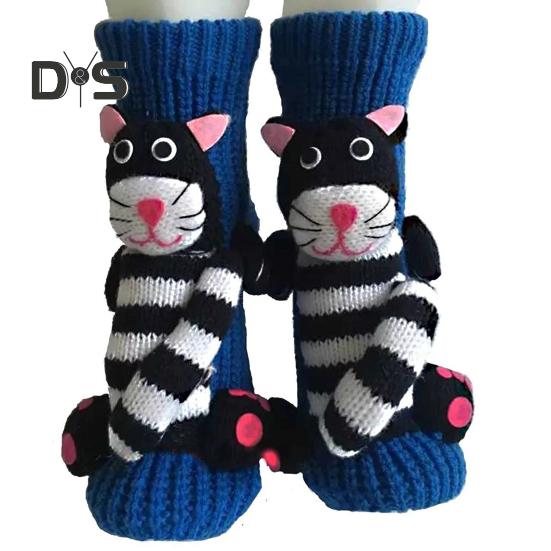 1 пара зимних носков с 3D-принтом с животными из мультфильмов, вязаные нескользящие утолщенные эластичные теплые носки средней длины с подошвой в силиконовые точки темно-синий