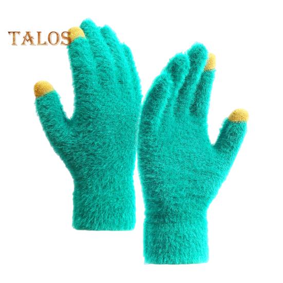 1 пара зимних перчаток унисекс, толстые плюшевые перчатки с пятью пальцами, нескользящие, для сенсорного экрана, однотонные, эластичные, сохраняющие тепло, перчатки для велоспорта и активного отдыха на открытом воздухе зелёный