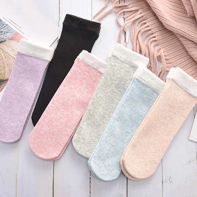 1 пара зимних утепленных чулок средней длины, хлопковые дышащие впитывающие пот носки-тапочки, однотонные сохраняющие тепло носки, женские носки