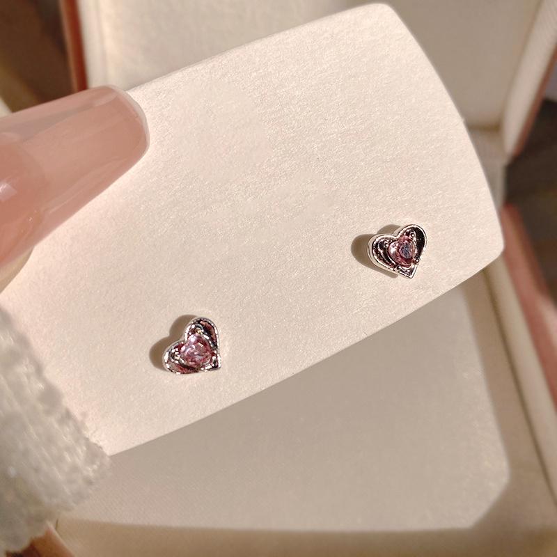 1 пара изысканных маленьких цветных серег-гвоздиков в форме сердца с бриллиантами в стиле минимализм, ювелирные изделия