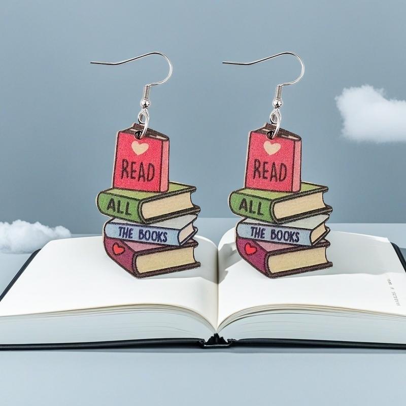 1 пара красочных серег-подвесок в виде сердечек с дизайном книг, милые деревянные украшения в мультяшном стиле