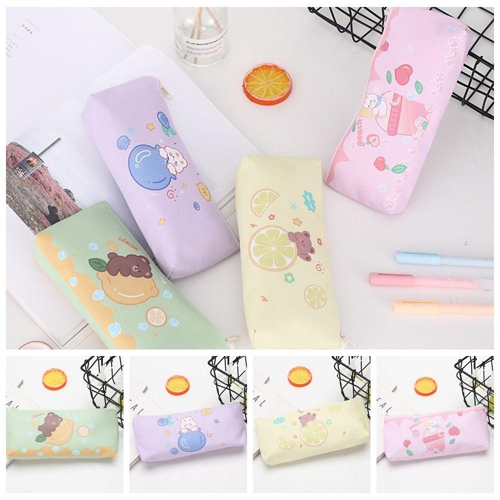 Cartoon Bear Lemon Bear Pen Bag Kawaii Stationery Bag Durable Pu Pencil Case Student