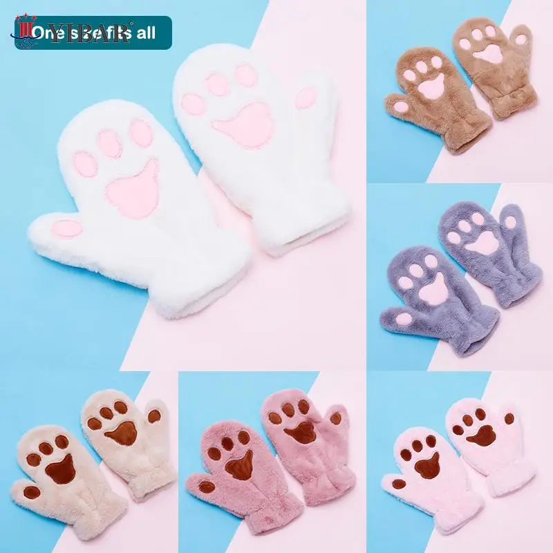 1 пара модные плюшевые варежки с кошачьими когтями для девочек, зимние теплые мягкие плюшевые женские перчатки с медведем, кошкой, утолщенные плюшевые перчатки