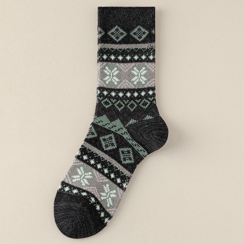 1 пара мужских носков хлопок осень и зима утолщенные теплые ретро этнический стиль двухслойные носки средней длины One Size темно-серого