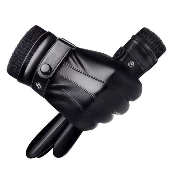 1 пара мужских перчаток, ветрозащитные, сенсорные, с полным пальцем, плюшевая подкладка, искусственная кожа, водонепроницаемые, противоскользящие перчатки для улицы чёрный