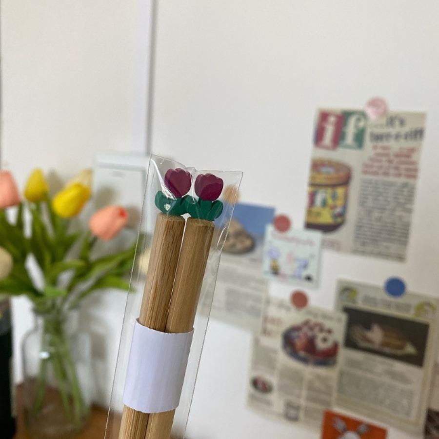 1 пара палочек для еды Ins Wind Lovely Tulip, практичные бамбуковые палочки для еды, для семейного банкета, одноцветная вставка, красочное украшение в виде тюльпана 1pair фиолетовый