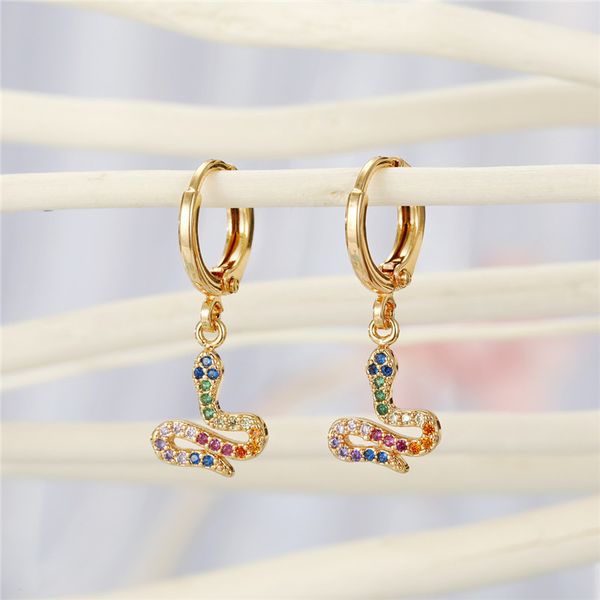 1 пара панк старинные горный хрусталь змея маленькие серьги обруча для женщин милый золотой серебряный цвет радуга циркон серьги стержня юве, Golden;silver