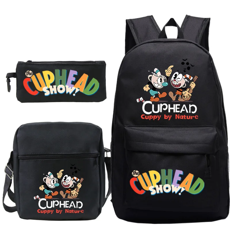 Новый рюкзак Cuphead, комплект из 3 предметов, школьная сумка для мальчиков и девочек-подростков, рюкзак на молнии для ноутбука, дорожная сумка, холст, Mochilas, подарок