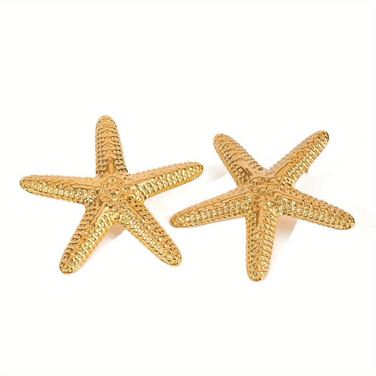 1 пара серег в форме пятиконечной морской звезды, яркая золотистая металлическая текстура, подчеркивающая изысканное и благородное чувство