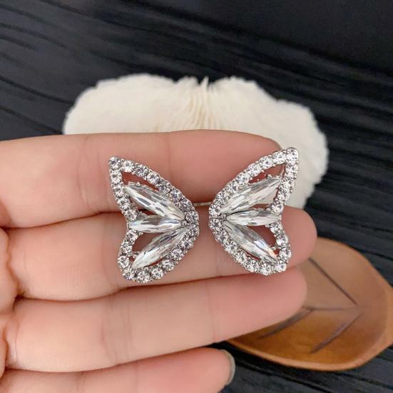 1 пара серег-гвоздиков, темпераментный подарок, роскошные красивые ослепительные стразы, крылья бабочки, женские серьги, ювелирные аксессуары