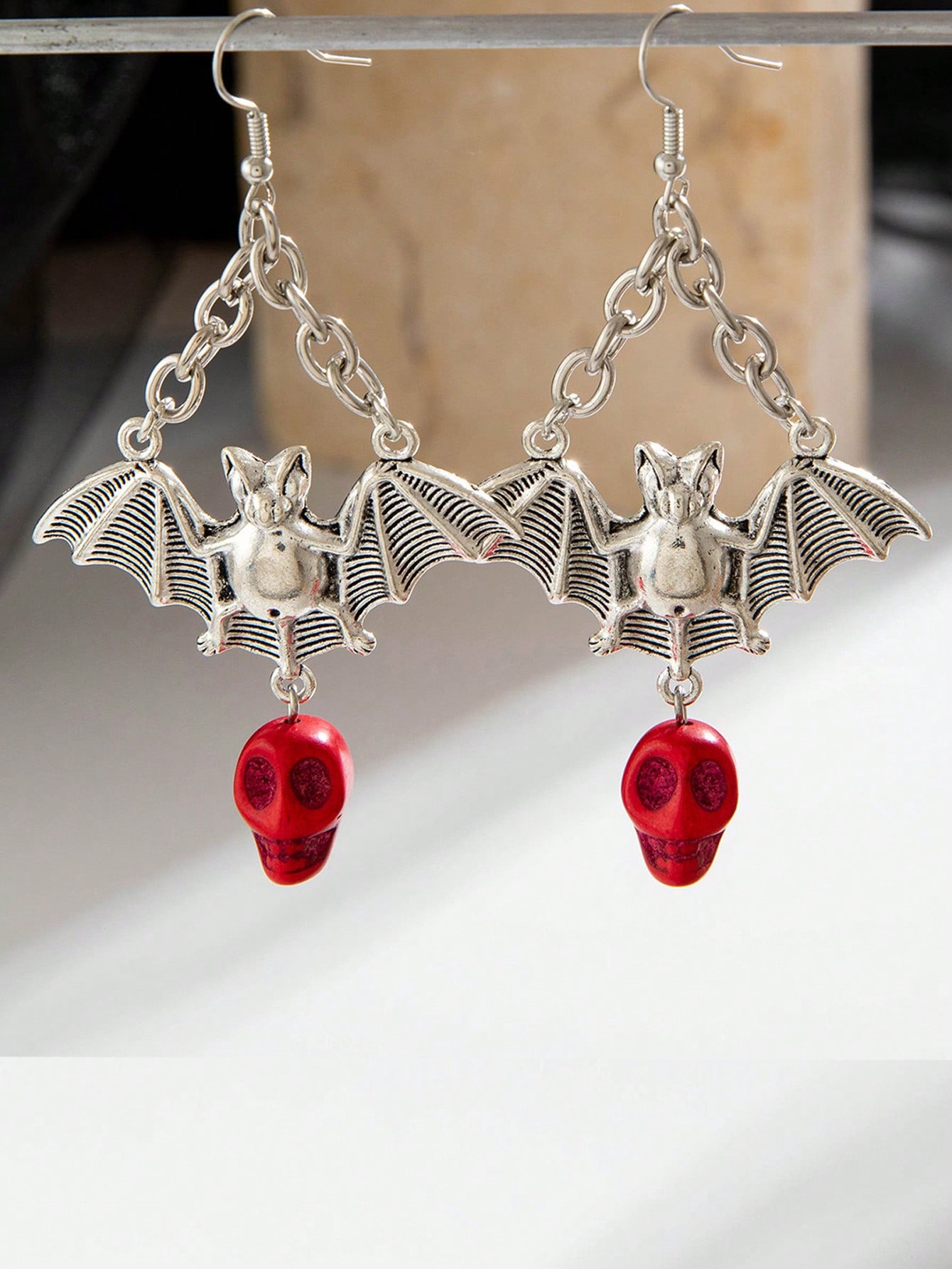 1 пара серег-подвесок в виде летучей мыши в винтажном готическом стиле, подойдет для любого случая красный