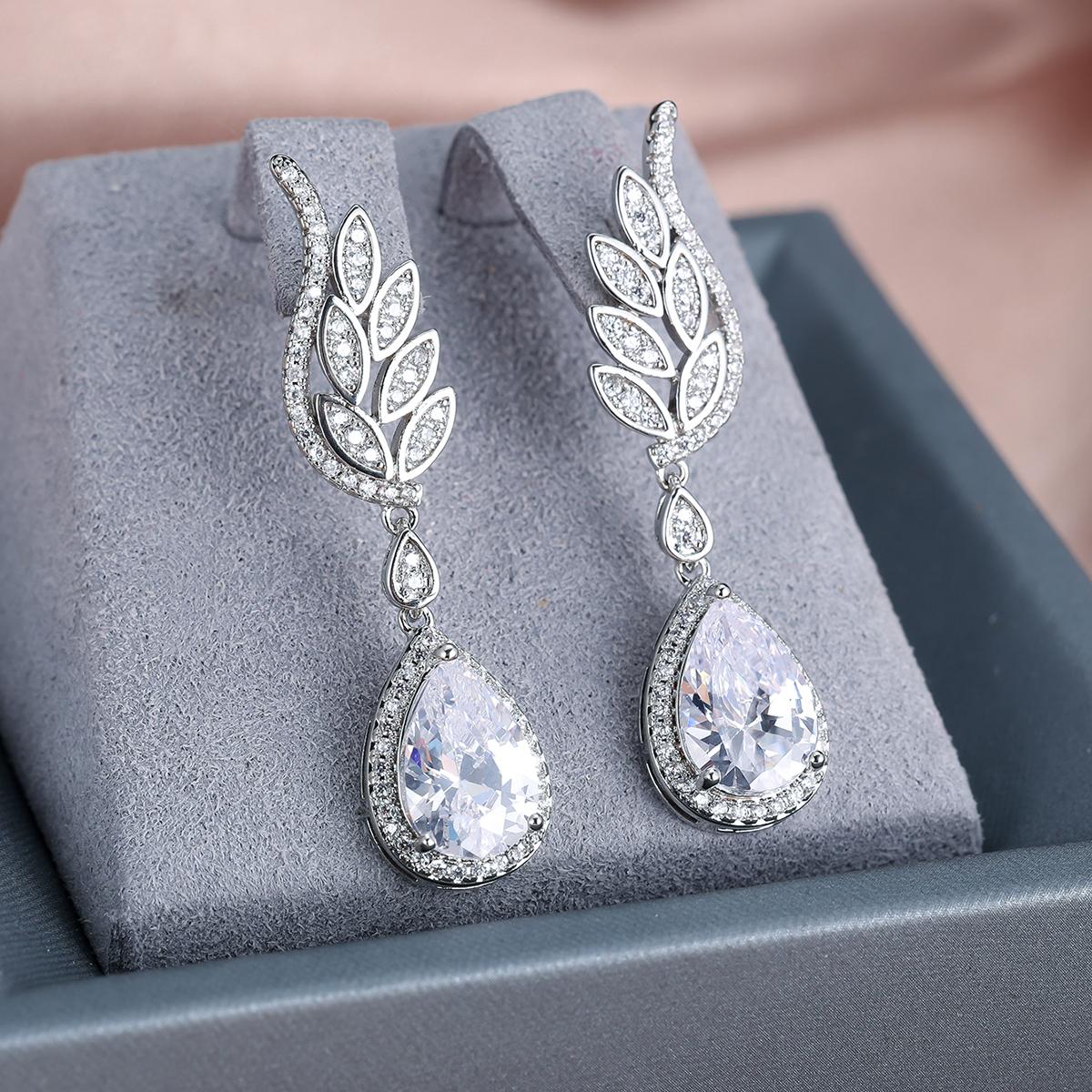 1 пара серег серебристого цвета с цветочным принтом в виде листьев и перьев, серьги-капельки с радужным камнем, висячие серьги, подарок на день Святого Валентина