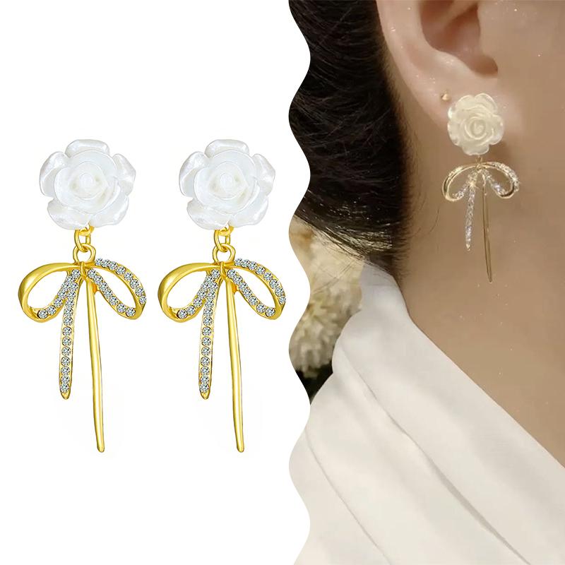 1 пара сережек-кисточек с камелией и цирконием, серьги-подвески, ювелирный подарок