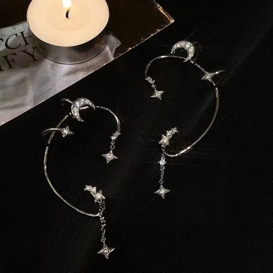 1 пара сережок-кліпс у формі місяця, зірки, блискучі манжети зі стразами для побачень