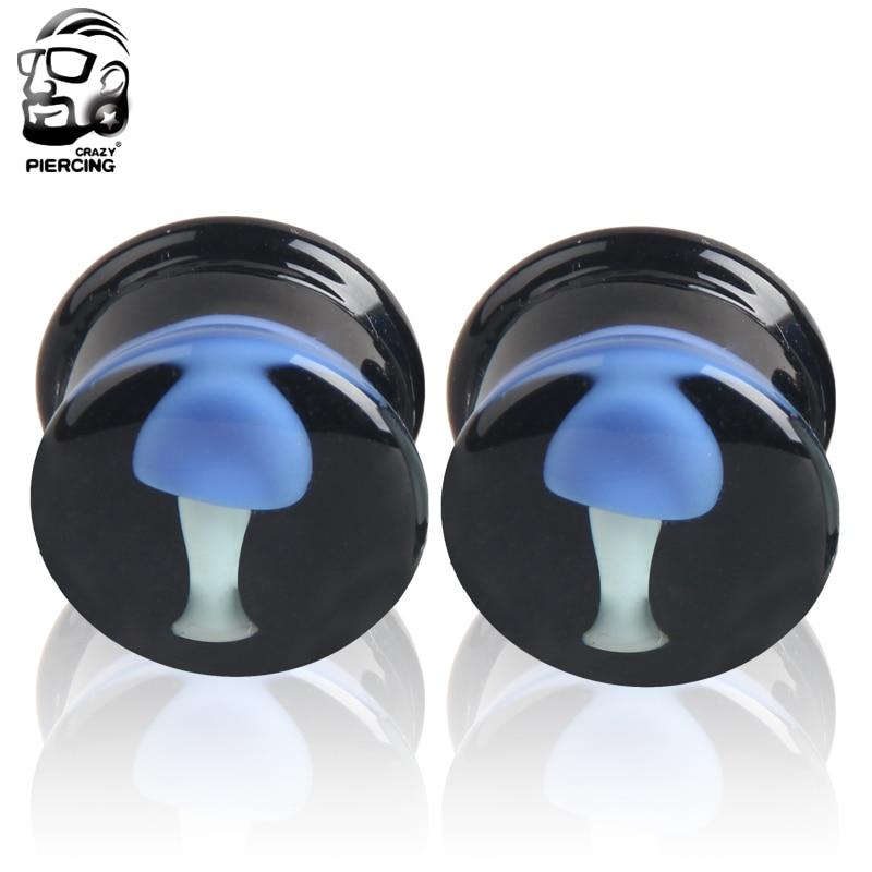 1 пара стеклянных затычек для ушей, туннельные носилки для ушей, расширитель, украшения для тела, модные синие стеклянные серьги с логотипом медузы, ювелирные изделия 0g (8 mm)