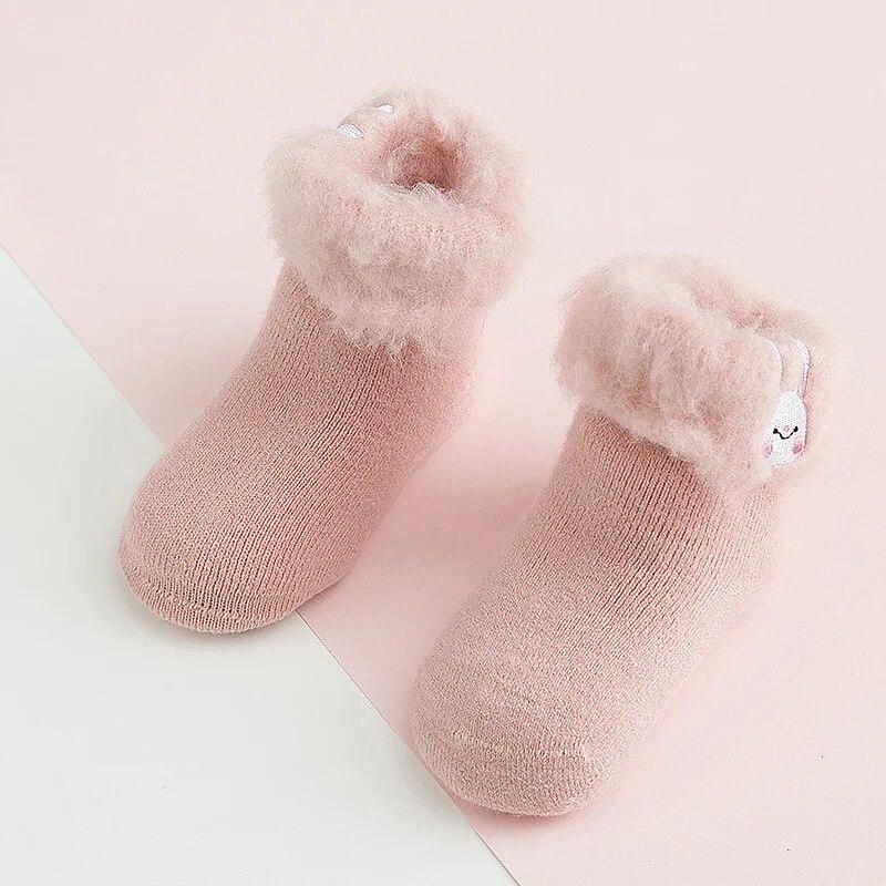 1 пара теплых носков для новорожденных, кавайные носки с изображением животных из мультфильма для маленьких мальчиков и девочек, милые осенне-зимние утепленные плюшевые детские носки M розовый