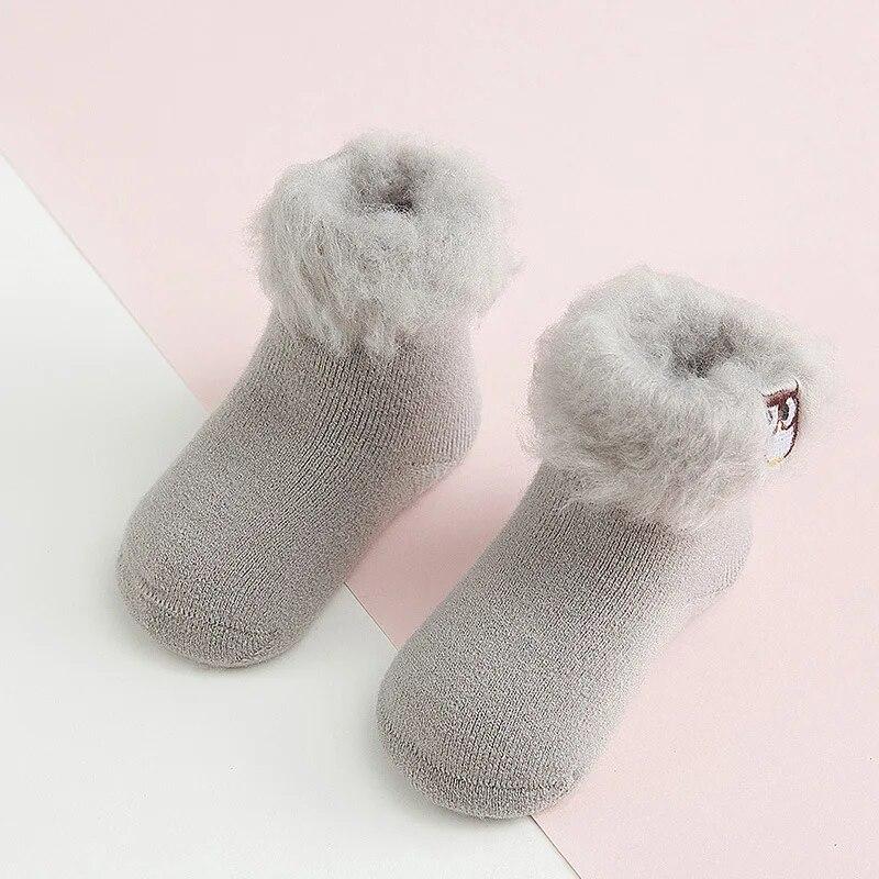 1 пара теплых носков для новорожденных, кавайные носки с изображением животных из мультфильма для маленьких мальчиков и девочек, милые осенне-зимние утепленные плюшевые детские носки M серый