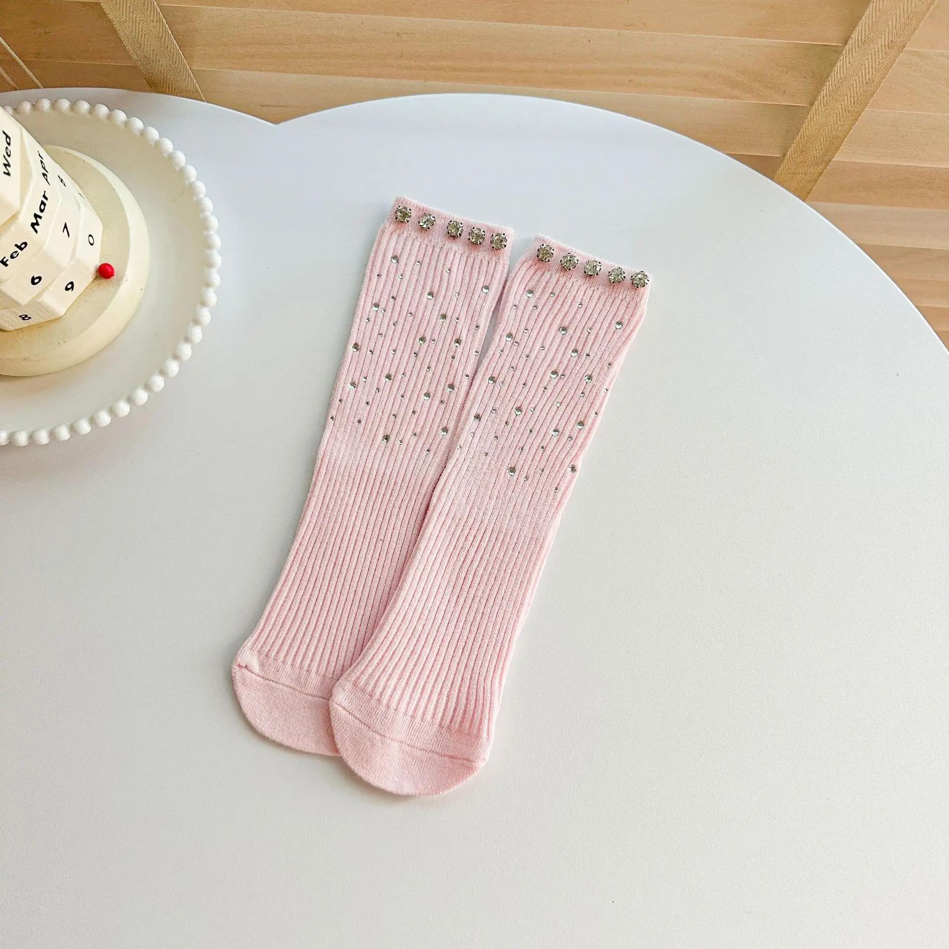 1 пара шикарных блестящих носков для девочек со стразами, корейские милые шикарные носки средней длины для детей, весна-осень, хлопковые мягкие школьные носки розовый