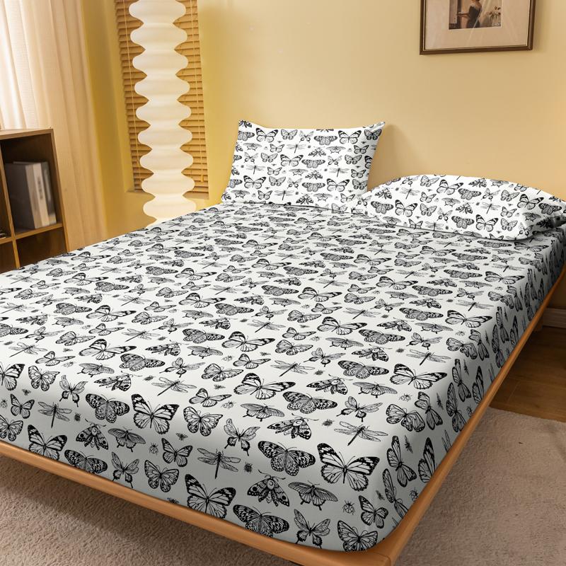 1 простая современная матовая простыня на резинке с принтом бабочек, покрывало для кровати с принтом в спальню, постельное белье (Исключая наволочки) 71x132cm