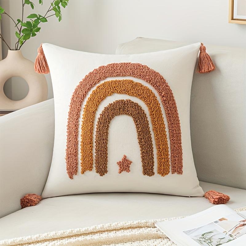 1 шт. Богемная наволочка с кисточками, Дизайн мультяшного солнца, Геометрический узор, Только ручная стирка, Застежка-молния, Тканый полиэстер, Вставка для подушки не входит в комплект 45*45 кофейный