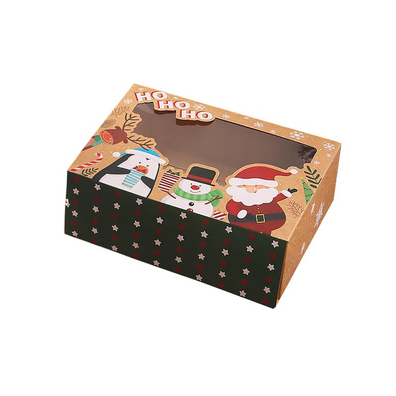 1 шт. Бумажная подарочная коробка Праздничная крафтовая картонная коробка для выпечки Рождественская коробка для печенья Вечеринка Прозрачное окно для подарков Коробка для пончиков Подарки