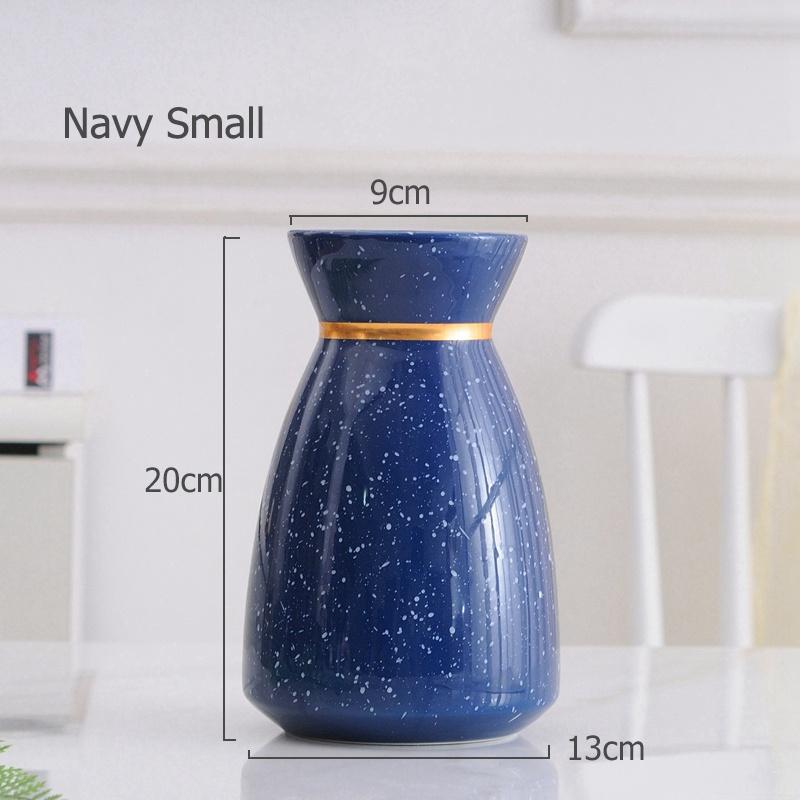 1 шт. Ваза для цветов с точечным дизайном, синий, темно-синий, керамический цветочный горшок с золотым кольцом, современная настольная ваза для украшения дома