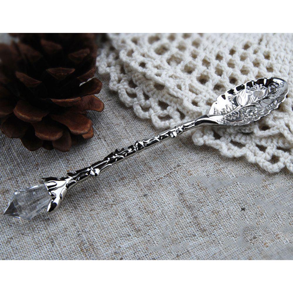 1 шт. Винтажная кофейная ложка, резной цветок, чайная ложка, хрустальная молочная ложка, ложка для мороженого, сахарная ложка для торта, кухонные принадлежности серебряный