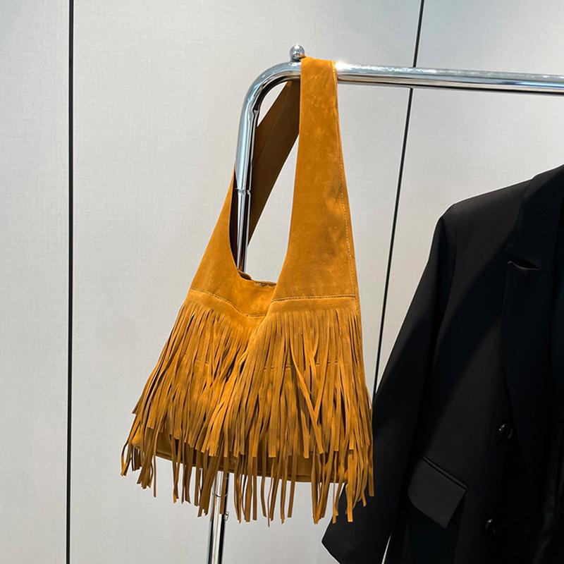 1 шт. Женская матовая сумка на плечо с кисточками из искусственной замши с бахромой, сумка под мышкой большой вместимости, дорожная сумка-тоут, женская сумка для покупок коричневый