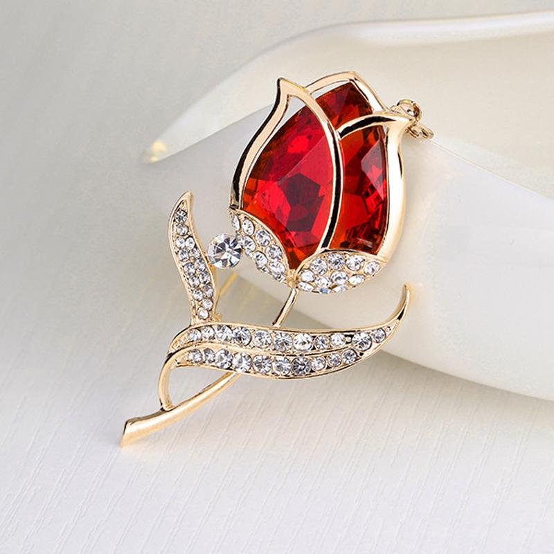 1 шт. Женская элегантная брошь в виде цветка тюльпана со стразами и кристаллами для женского платья, пальто, аксессуары, модная брошь, ювелирные изделия, подарок красный
