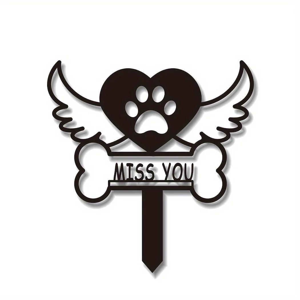 1 шт. Знак-маркер для домашних животных с колышком, элегантный мемориальный садовый декор для домашних животных, продуманный подарок на потерю, стильный могильный маркер для собак/кошек чёрный