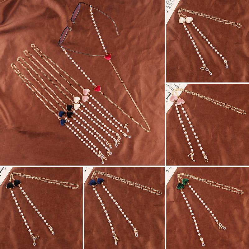 1 шт. Красочный жемчужный ремешок для шеи Ремешок Маска Цепочка Любовь Сердце Солнцезащитные очки Аксессуары Мода Креатив