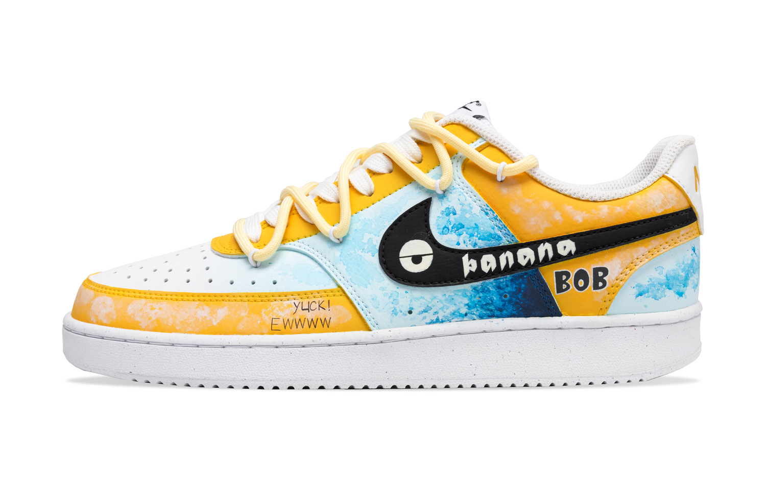 Nike Court Vision 1 Антискользящие Износостойкие Низкие Кроссовки для Скейтбординга Мужские Желто-Голубые