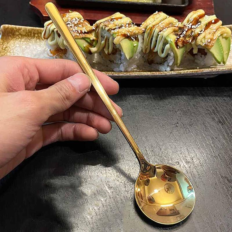 1 шт. Ложка из нержавеющей стали с большой круглой головкой и длинной ручкой - Кухонные аксессуары и гаджеты для перемешивания десертов золотой