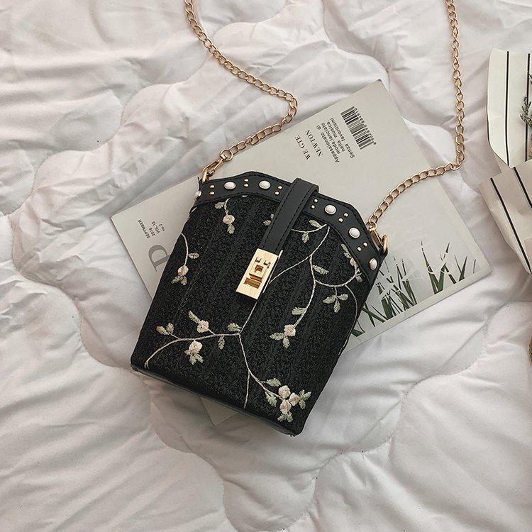 1 шт. Маленькая женская сумка, новая жемчужная соломенная плетеная сумка через плечо, плетеная сумка-ведро, сумка-мессенджер, украшение чёрный