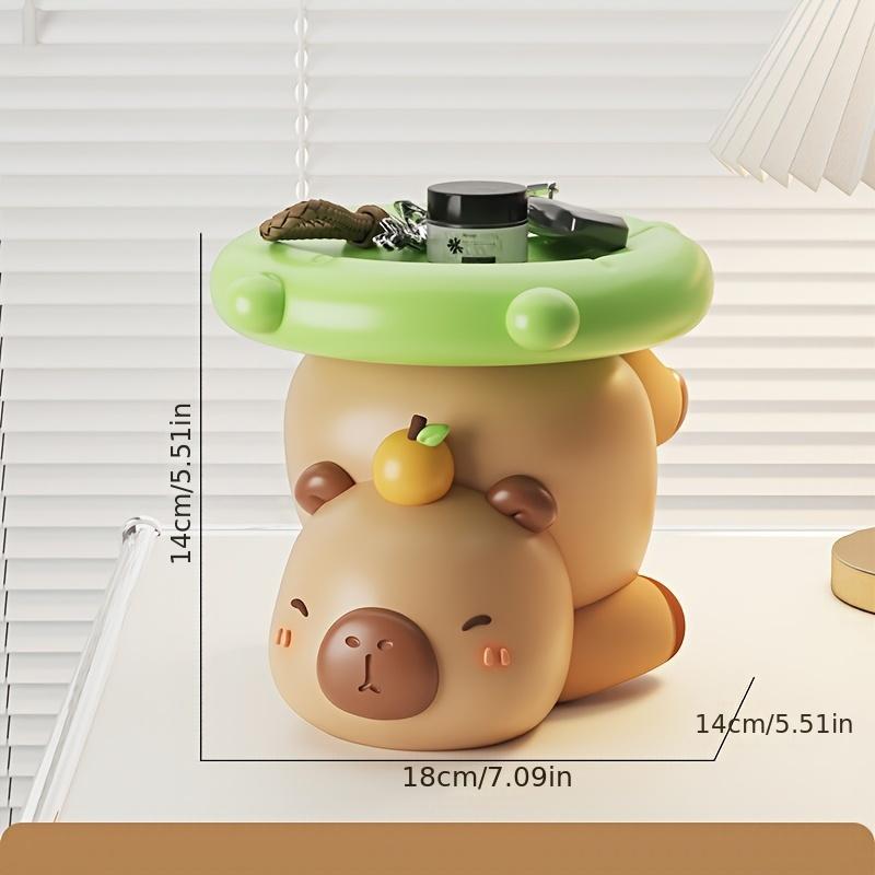 1 шт. Милая мультяшная статуэтка капибары в шляпе из зеленого листа - Декор животного из смолы, Геометрический поднос для хранения для дома, Полки, Каминной полки, Прихожей Style-A