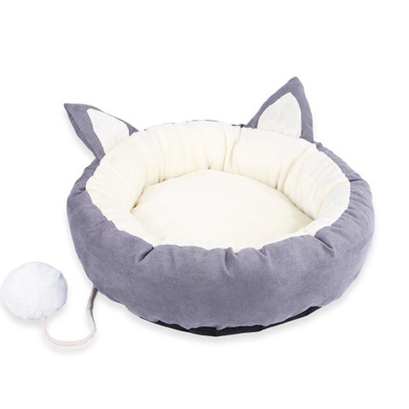 1 шт. Милая собачья кровать с ушками для питомца, зимний теплый флисовый домик для собак, роскошный диван-конура, гнездо серый