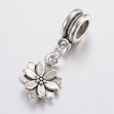Tibetan Style Alloy European Dangle Beads Large Hole Pendants Cadmium Free & Lead Free Flower Antique Silver 28mm