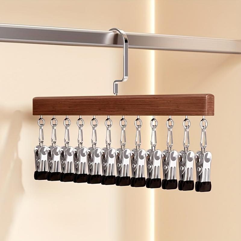 1 шт. Многофункциональная деревянная вешалка с 12 зажимами Высококачественная прочная деревянная стойка для хранения Галстуки Носки Подвешивание Без следов Сушилка кофейный