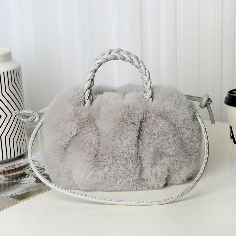 1 шт. Модная однотонная плюшевая сумка через плечо для мини-девочки, универсальная сумка принцессы серый