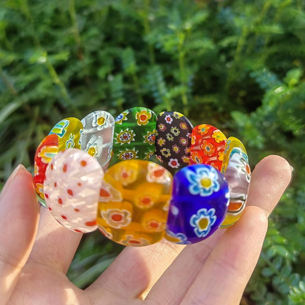 1 шт. Модный браслет из стекла миллефиори Мурано с цветочным узором, эллипс, лэмпворк, цветной, с цветочным узором, для женщин, для вечеринки, подарок, дешевые товары