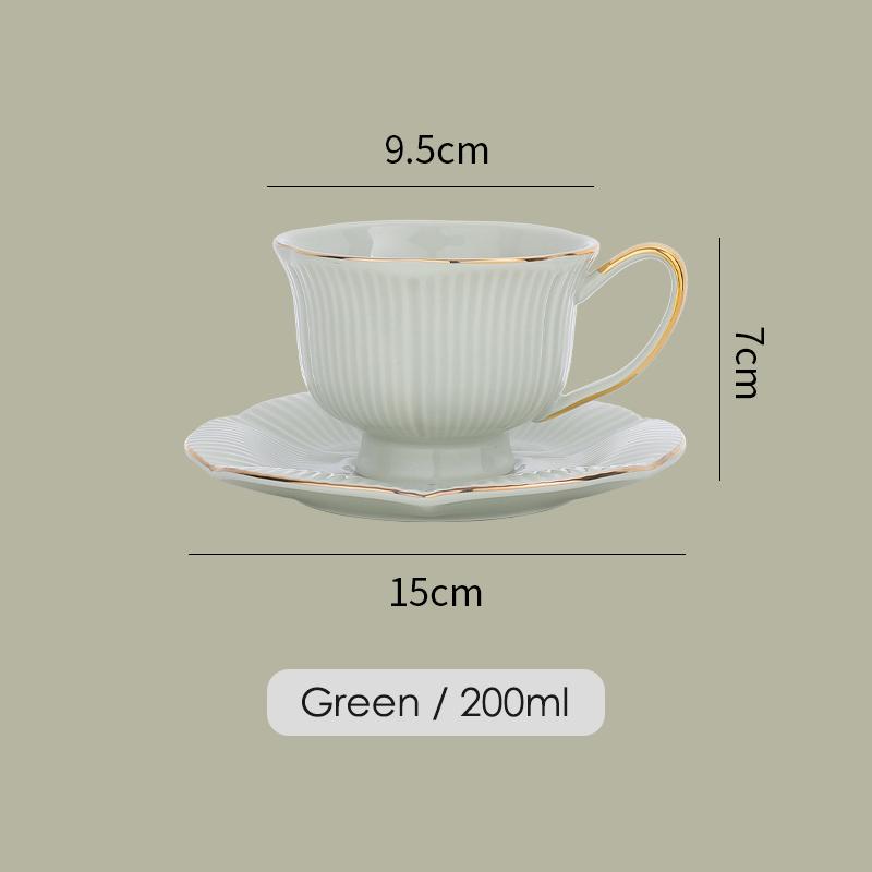 1 шт. Набор из кофейной чашки в форме цветка и блюдца, керамическая кружка для молока, чайная чашка с ручкой с золотым ободком, посуда для напитков 200 мл 200ml зелёный