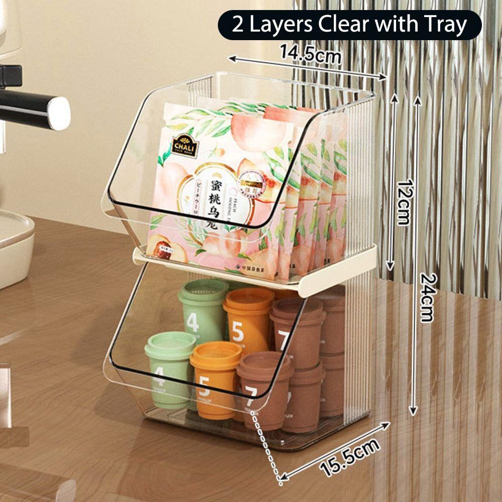 1 шт. Настенный подвесной ящик для хранения чайных пакетиков, настольный ящик для хранения мелочей, закусок 2 Layers Clear with Tray